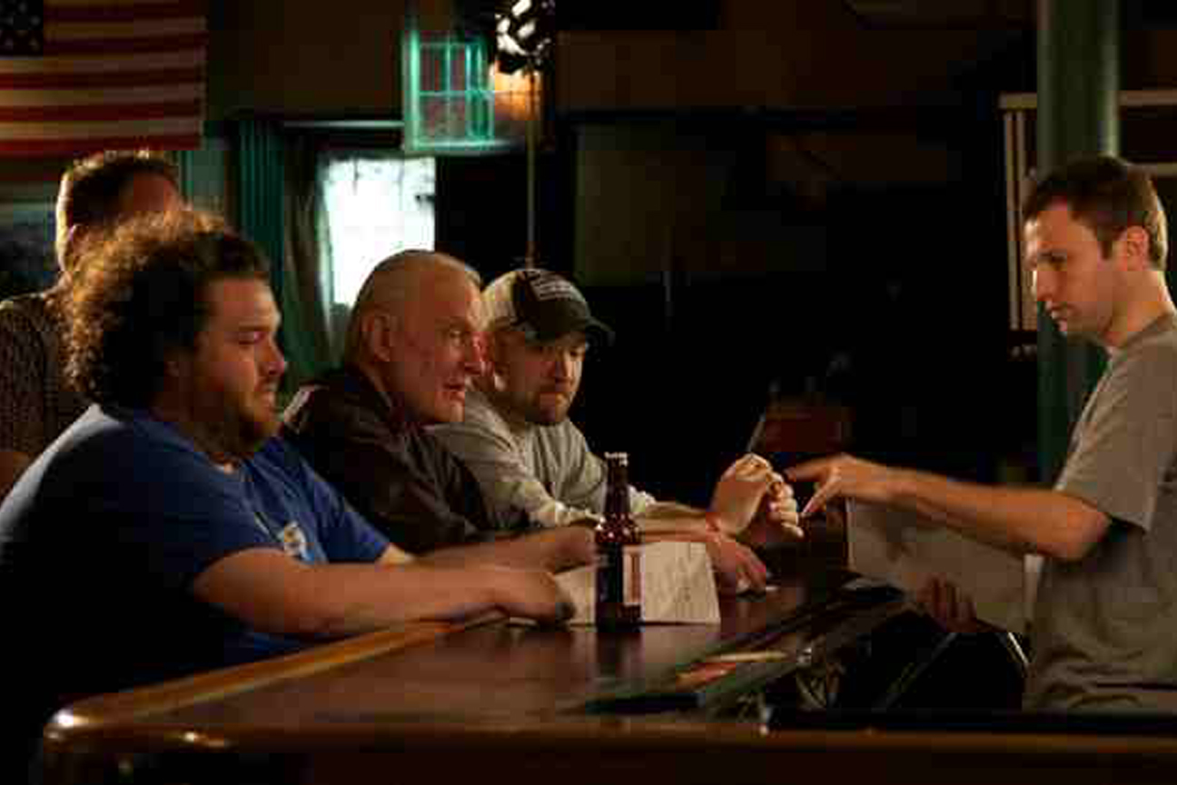Concluding that most of today’s homegrown literary salons are really “an excuse to drink a lot of wine and tell some jokes,” he hired what appears to be a random sample of white guys from a sports bar to join his. He cast a couple bearded dudes, a couple dumpy ones, a possibly-gay guy, and Mort, the exception.