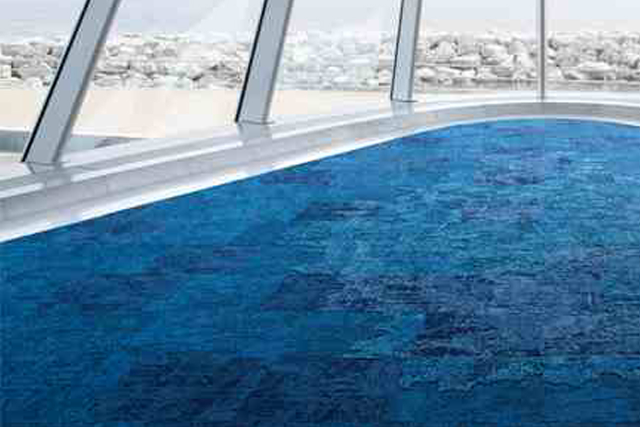 The material they collect is recycled into content for various products, including the blue Interface Carpet tiles that flow underneath a curved wing of the Milwaukee Art Museum.