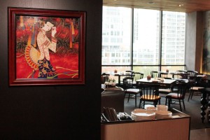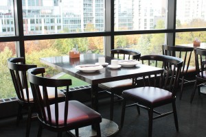 Since the restaurant sits on top of a hill that descends into Lake Shore East Park, the eastern windows overlook a vast and peaceful expanse of natural greenery that underscores the distant high rises along the river. Here, the main dining room seems to float over the landscape. The second dining room and the bar are on the other side, nestled in the walkway connecting to Randolph Street. The windows bring scenes of pedestrian bustle into the space, where natural woodwork and gentle lighting create the tranquility of a cozy hideout.